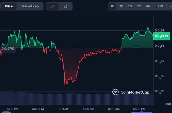 在撰写本文时,佩佩交易价格为 0.000006866 美元,在过去 24 小时内上涨了 1.07%。