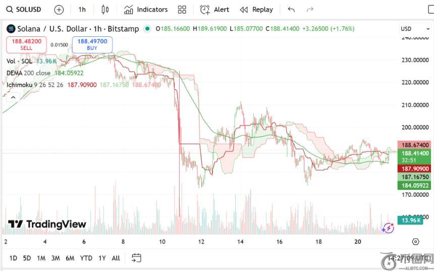 Solana (SOL) 目前交易价为186.03美元,过去24小时下跌2.95%,市值为1016.8亿美元,日交易量为55.9亿美元,下跌2.89%。随着围绕Solana ETF获批的猜测增多,机构投资者对其兴趣依然强劲。专家指出,如果ETF谈判取得进展,Solana的高吞吐量和活跃的开发者社区可能会推动新一轮牛市。