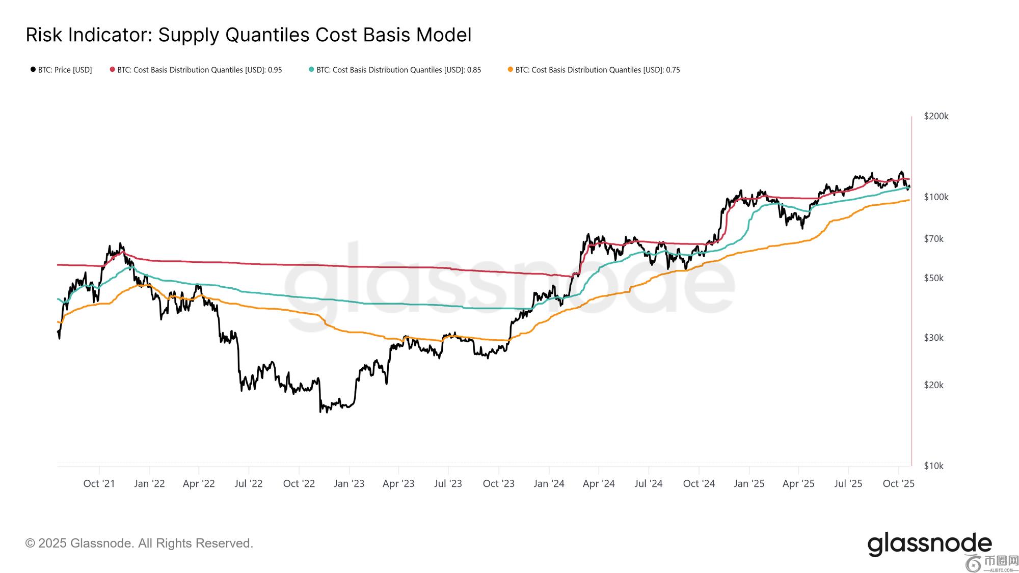 BTC 上一次跌至 0.75 分位数是在 2024 年中期的盘整期。目前,该水平相当于 97,500 美元。目前,该资产能否维持在 0.85 分位数以上,以及如果不能,是否会重新测试 0.75 分位数,仍有待观察。