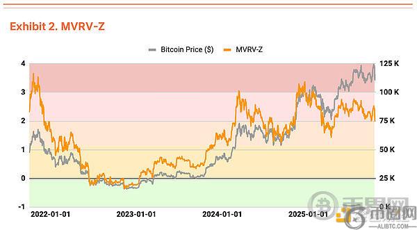 过热但尚未极端——MVRV-Z 指数为 2.31,表明估值偏高但尚未达到极端水平,杠杆资金的出清**了短期交易者,为下一波上涨创造了空间;
