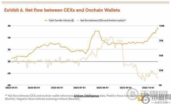 -2%的基本面调整反映了网络活动暂时放缓,以及**化交易所存款增加,表明短期**。宏观调整维持在35%。全球流动性扩张和机构资金流入持续,美联储的降息立场为第四季度的上涨提供了强大的催化剂。