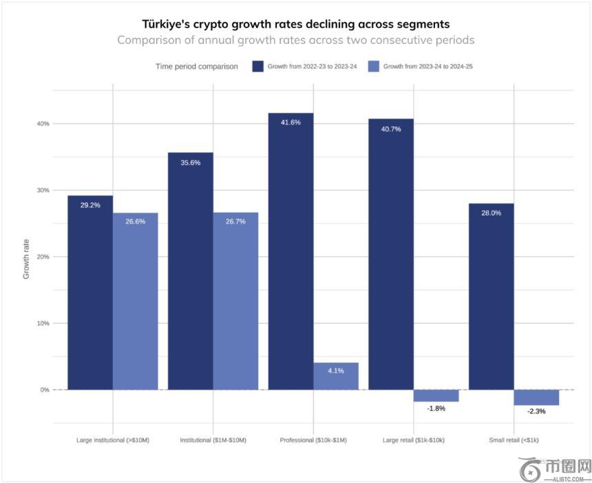 报告指出,土耳其的加密货币市场格局正日益机构化。大型参与者正在扩大其投资,而散户投资者的影响力逐渐减弱。这表明企业和基金正在对冲货币风险,而普通交易者的参与机会却在减少。