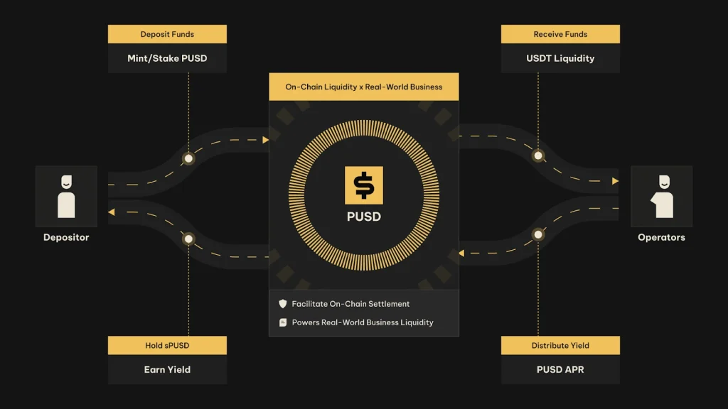 储户— 存入 USDT,接收 PUSD,并将其质押为 sPUSD 以获取收益。 投资者— 寻求与黄金挂钩的回报的稳定流动性的交易员或资产经理。 运算符— 金属参与者使用 PUSD 来解锁营运资金并加速结算。这PGOLD↔PUSD 循环允许全天候转换,实现稳定价值和金属支持价值之间的即时转换——将结算时间从几天缩短到几秒钟。PUSD 可随时兑换为 USDT,确保稳定性和灵活性,同时保持区块链流动性和现实世界资产之间的直接桥梁。