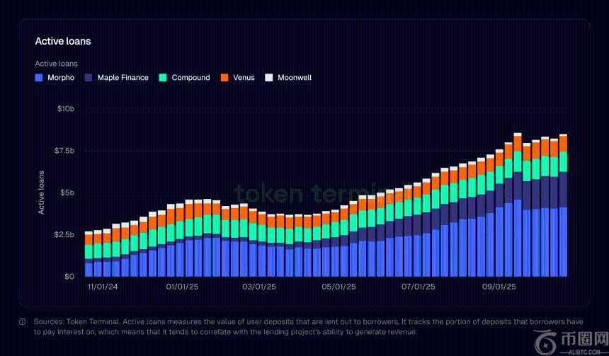 尽管如此,Maple 的活跃**额已增至 21 亿美元,排名第四之后 Aave [**VE], 闪蝶 [MORPHO],和 火花[SPK].