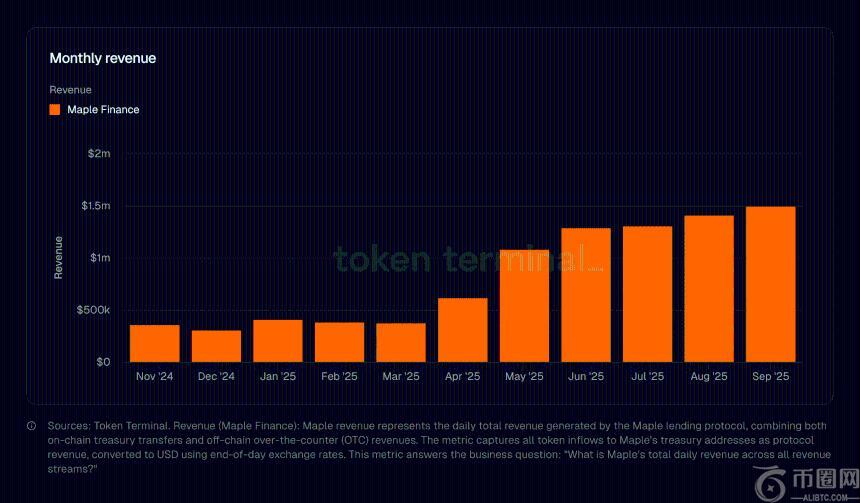 2025 年下半年,Maple 平均每月收入超过 100 万美元,9 月份为 150 万美元。