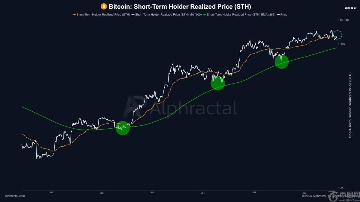 Darkfost 还强调了另一个关键观察结果:在当前的牛市周期中,比特币从未跌破年度 STH 实际价格。每当价格接近该水平时,就会出现反弹——这再次证实了其作为整体趋势的结构性支撑。