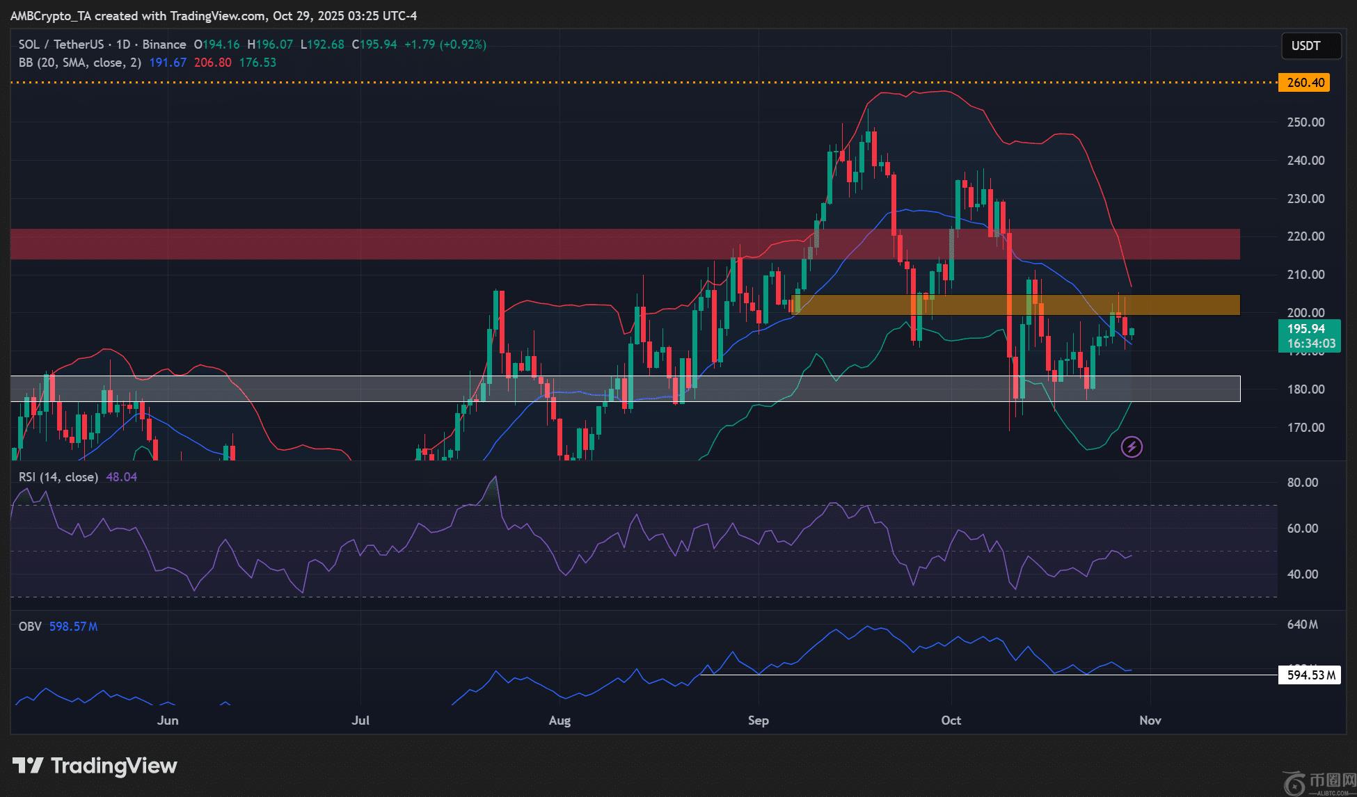 尽管SOL**表现惊艳,且有众多ETF产品推出,但其价格还是从200美元跌至190美元。