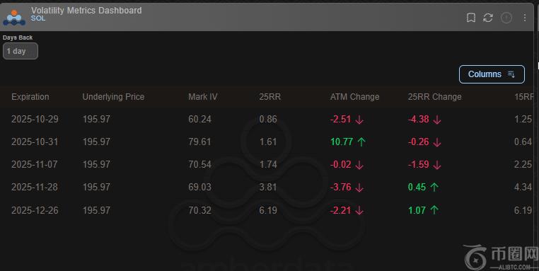 如25-Delta风险逆转指标(25RR)所示,即将到期的期权的读数在0.86(中性)到3-6(看涨)之间。这意味着交易者在11月份需要支付更高的价格来获得上涨保护。