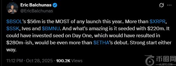就交易量而言,Bitwise今年在BSOL上的**亮相表现异常出色。**的彭博ETF分析师埃里克·巴尔丘纳斯。