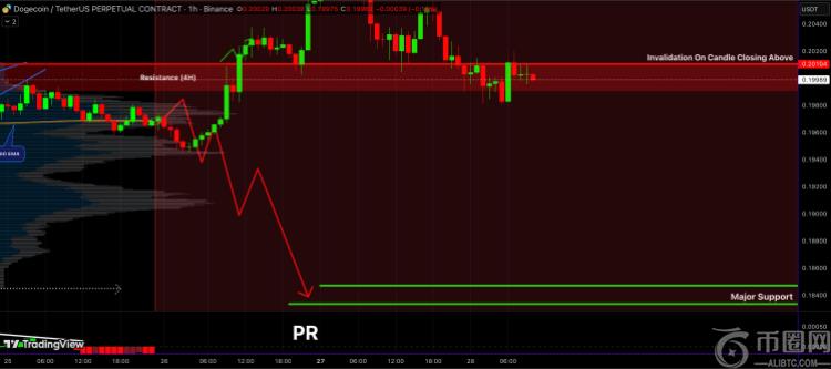 首先引人注目的是,这位加密货币分析师解释说:狗狗币价格已经遭遇很大阻力。尤其是在4小时图上。由于价格在0.21美元下方受阻,这表明空头已经在这个价位施加了很大的压力。