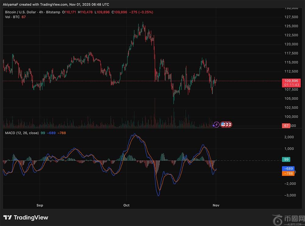 技术图表显示,比特币价格可能已在 106,000 美元附近触底。相对强弱指数 (RSI) 短暂跌至 45 后反弹,这是典型的超卖反转信号。此外,移动平均收敛/发散指标 (MACD) 刚刚上穿金叉,与 2020 年和 2023 年引发大幅上涨的形态如出一辙。关注今日加密货币新闻趋势的分析师认为,一旦成交量回升,比特币价格有望冲击 120,000 美元。