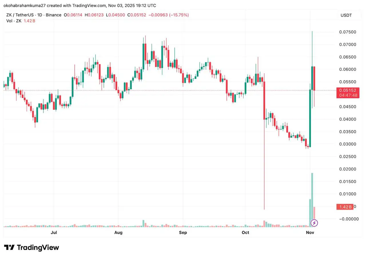 和 RSI维持中性,表明其处于稳定的盘整阶段,投资者信心持续。展望未来,TON 的价格预测依然强劲看涨。投影到12月,涨幅可能达到124%。ZKsync (ZK):维塔利克的赞扬引发大规模抛售