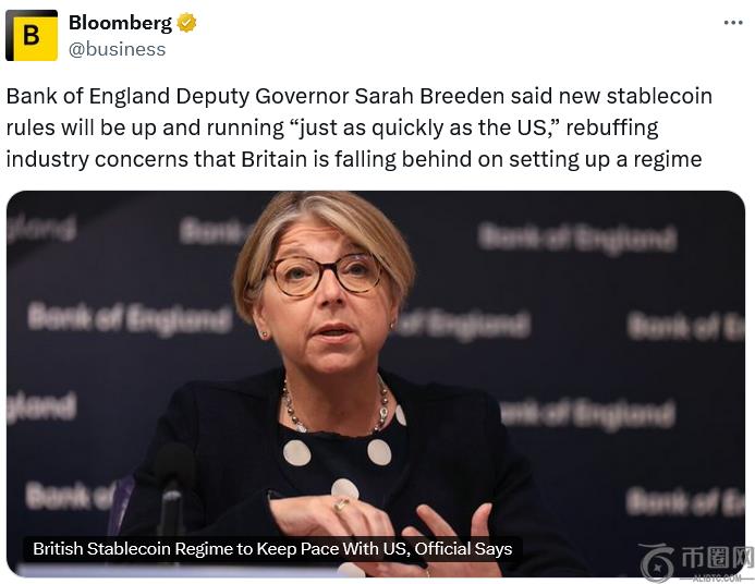 下一个值得入手的1000倍加密货币是什么?英国央行副行长萨拉·布里登表示,英国央行正加紧使其稳定币监管与美国监管保持一致。她称,随着规模达3100亿美元的稳定币行业加速迈向主流金融,这两个盟友保持步调一致“至关重要”。