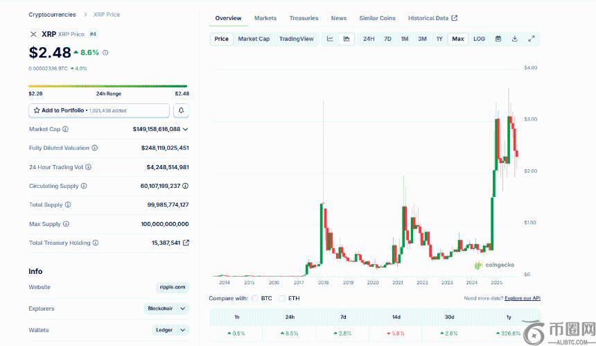 然而,市场普遍预期,一旦ETF获得批准,机构资金将涌入XRP,这可能会推动其价格在未来几天内飙升至3美元。目前,XRP的关键支撑位仍位于2美元附近。