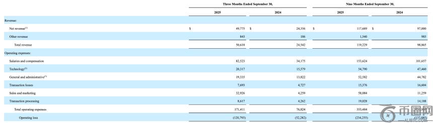 尽管收入增长显著,Gemini的运营成本却以更高的比例上升。三季度运营支出达到1.71亿美元,同比增长123.1%,其中销售和市场费用更是同比上涨了近7倍。