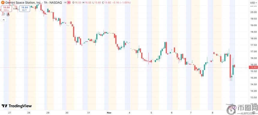 由于投资者对Gemini亏损持续扩大的担忧,公司股价在盘后交易中一度跌破15美元,创下上市以来的新低,较历史**价已下跌三分之二。