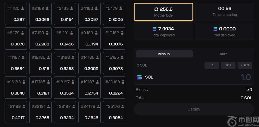 基本玩法是,有一个 5×5 网格共 25 个格子,矿工用 SOL 当赌注,在格子上“prospect”(占领空间),可多格、可重复(** 0.1 SOL/格)。每轮结束时,系统通过 Solana 官方 VRF(可验证随机函数)随机抽出一个“中奖格子”。中奖格子的所有矿工按比例瓜分本轮所有失败格子的 SOL 1 个新发行的 ORE。其中约一半轮次,系统会通过加权随机选出 1 名矿工独得整个 1 ORE,其余中奖者只分 SOL。