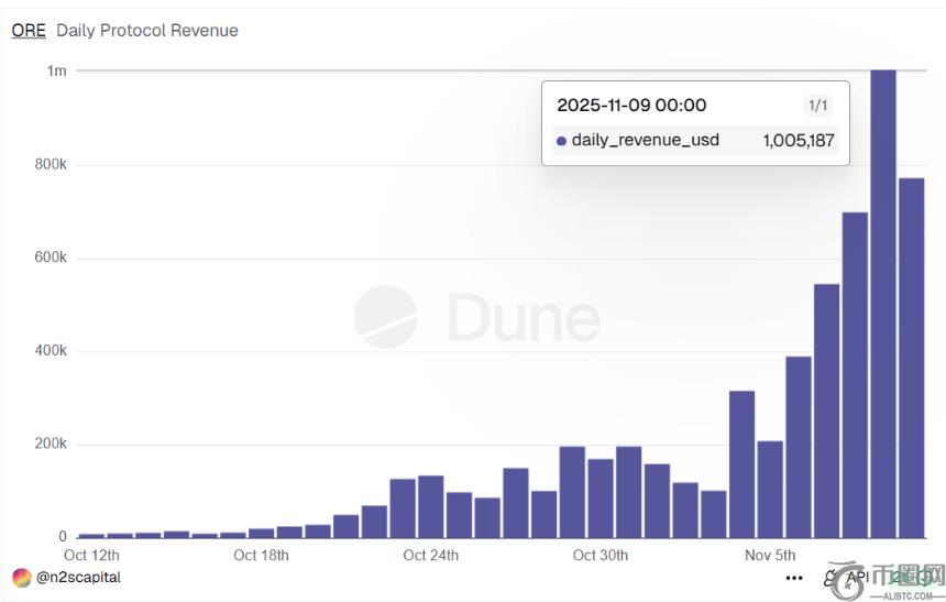 这意味着,ORE 实际上构建了一种“内循环通缩机制”:协议越热、投机越强,回购越多,价格预期越高——从而引导更多投机者涌入。通缩不再只是货币属性,而是一种情绪驱动的价格叙事。