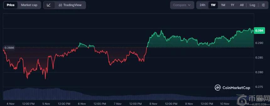 尽管整体市场持续波动,Tron的价格从0.33美元跌至接近0.30美元,但其价格稳定在0.29美元至0.31美元之间,并实现了日内小幅上涨0.96%,成为市场表现**的**之一。