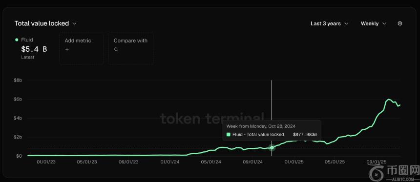 自一年前 Fluid DEX 上线以来,Fluid 的 TVL(总锁仓量)增长了 515%。