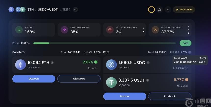 3)一个 ETH/USDC 智能抵押池,通过 USDC/ETH 智能债务加杠杆(这仅适用于那些热爱杠杆、并且能够对冲无常损失的资深做市商)。