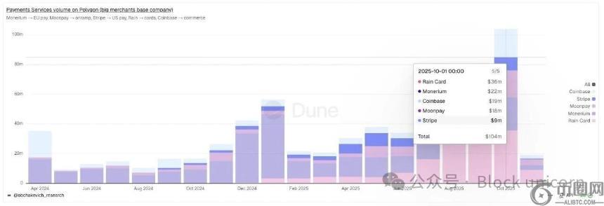 Polygon 近期的支付活动反映了这一发展势头。2025 年 10 月,Polygon 的链上转账量创历史新高,具体如下:
