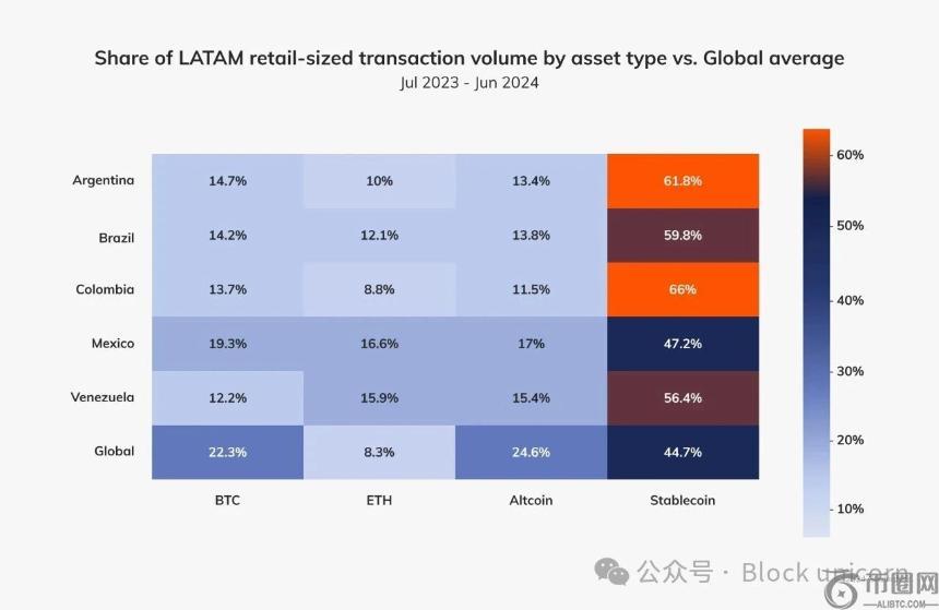 高通胀使得本地定价变得不可能。在阿根廷,约 62% 的加密货币交易活动集中在稳定币上,而 USDT 的交易价格一直高于官方美元汇率。
