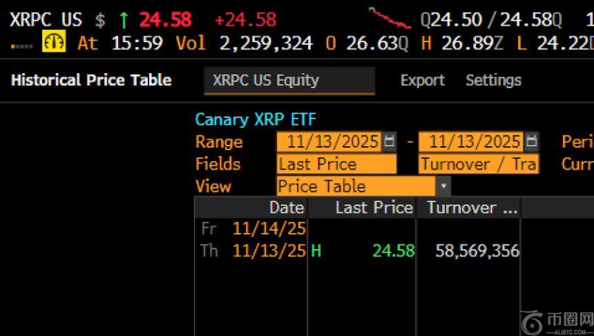 Canary 的 XRP ETF 成交量达 5800 万美元,超出预期,但价格仍面临压力。