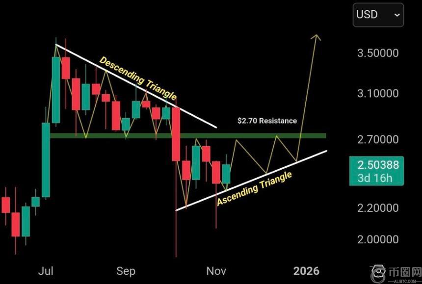 XRP 试图突破 2.50 美元,但与比特币和以太坊一样,未能维持涨势。价格迅速反转。跌破2.30美元,整个市场转跌,跌幅接近 9%。 与此同时,交易员ChartNerd指出XRP近期跌破下降三角形形态,在10月下旬跌破2.70美元的支撑位。这一走势将该**推至2.00美元至2.20美元的支撑区域。