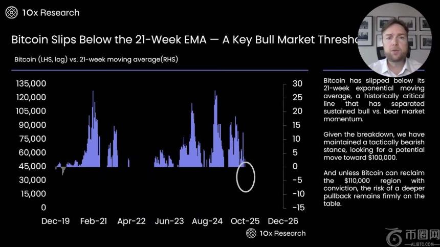 比特币跌破 21 周 EMA ——牛市的关键门槛