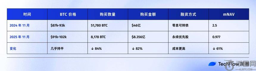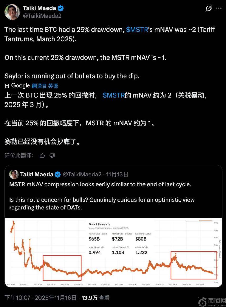 但当 BTC 大跌,加上mNAV跌破1,这个循环就没有以前那么丝滑了。