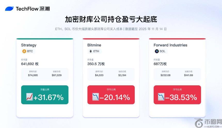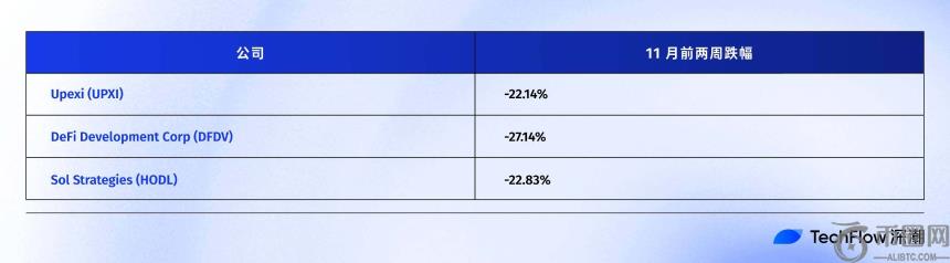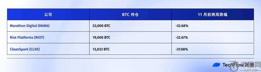 这些公司都是比特币矿工 财库模式,11月前两周,BTC跌了约15%,但它们的股价跌幅都超过30%。