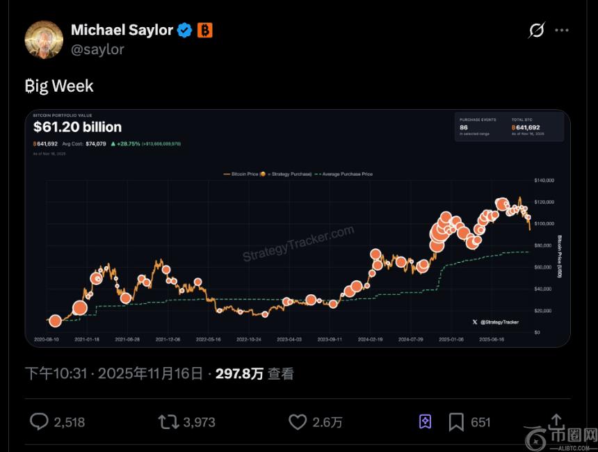 11月17日,Michael Saylor 照例在X上发了条推:"Big Week"。