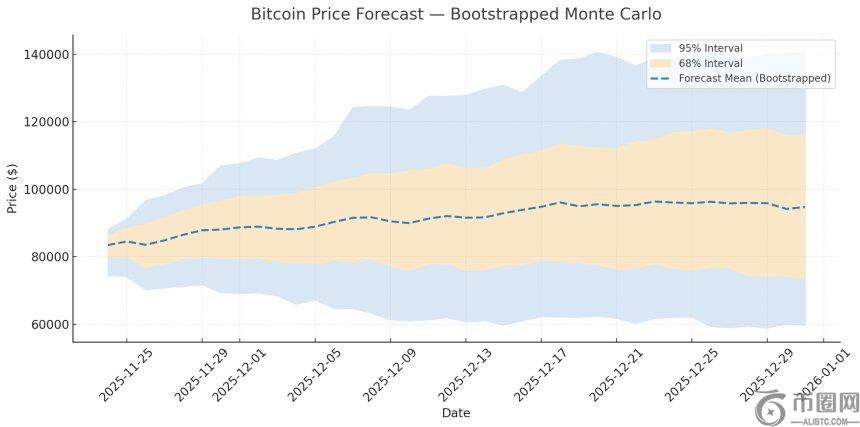 所提出的模型表明了一种微妙的情景,其中比特币至少有 15% 的概率收于约 84,500 美元的低点,有 85% 的概率收于高点。
