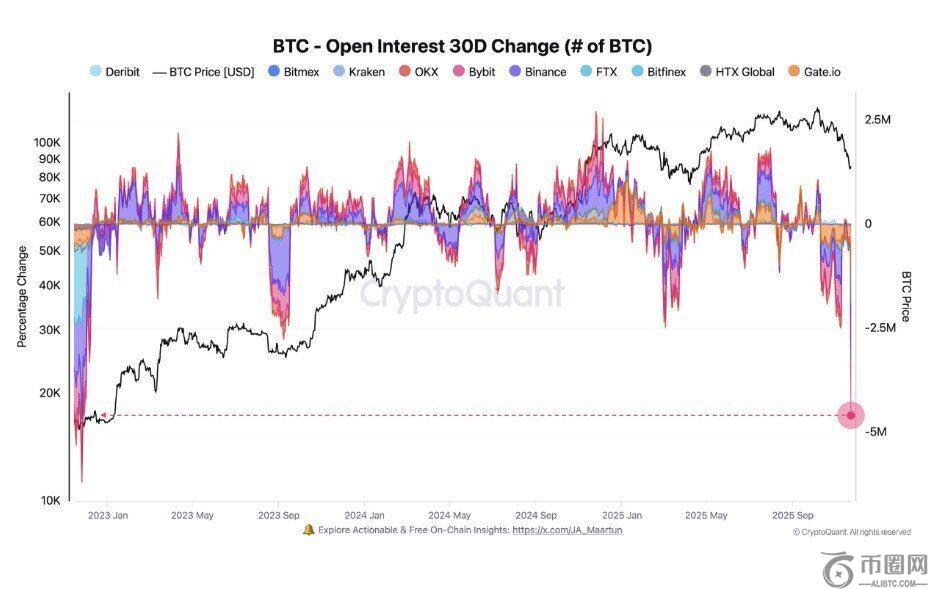 当未平仓合约量下降时,价格会变得更加稳定,因为使用借贷资金的交易者减少了。