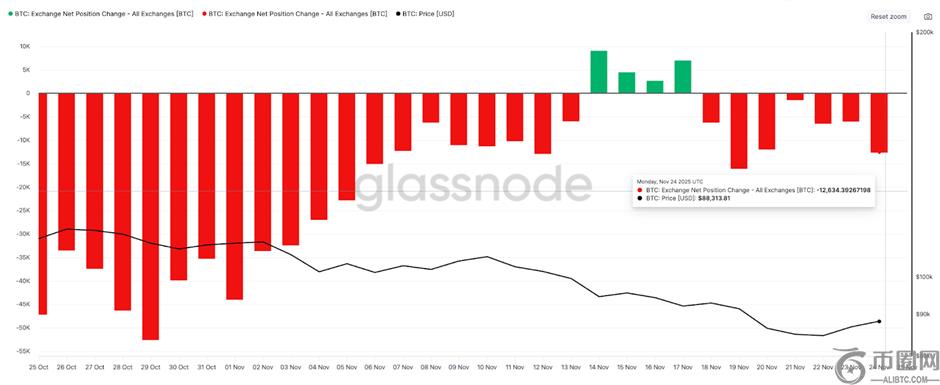 比特币未平仓合约量下降,更多比特币正从交易所流出。这表明买家正在**回归。
