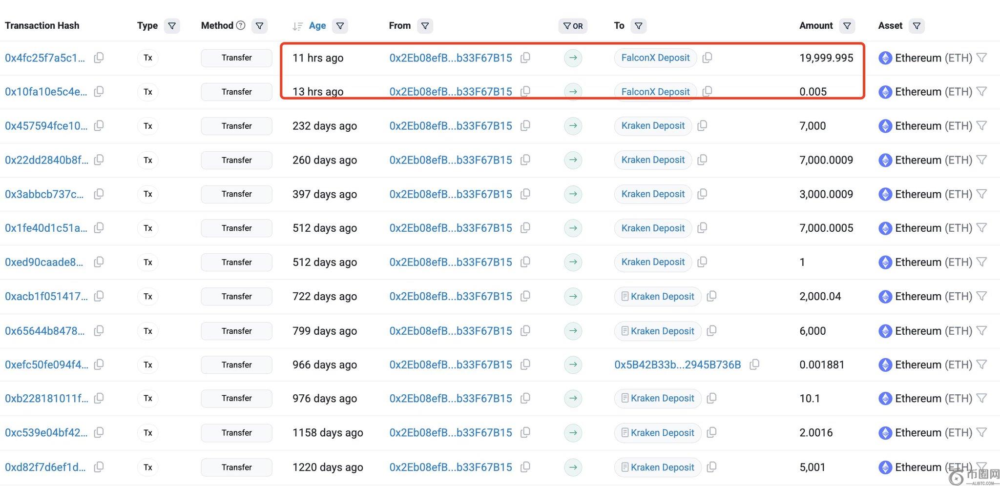 与此同时,链上**动态显示,大额持仓者正在减持,这进一步考验着投资者的信心。据 Lookonchain 数据显示,就在几个小时前,一位以太坊 ICO 参与者通过 FalconX 平台出售了 2 万枚 ETH,价值约 5814 万美元。