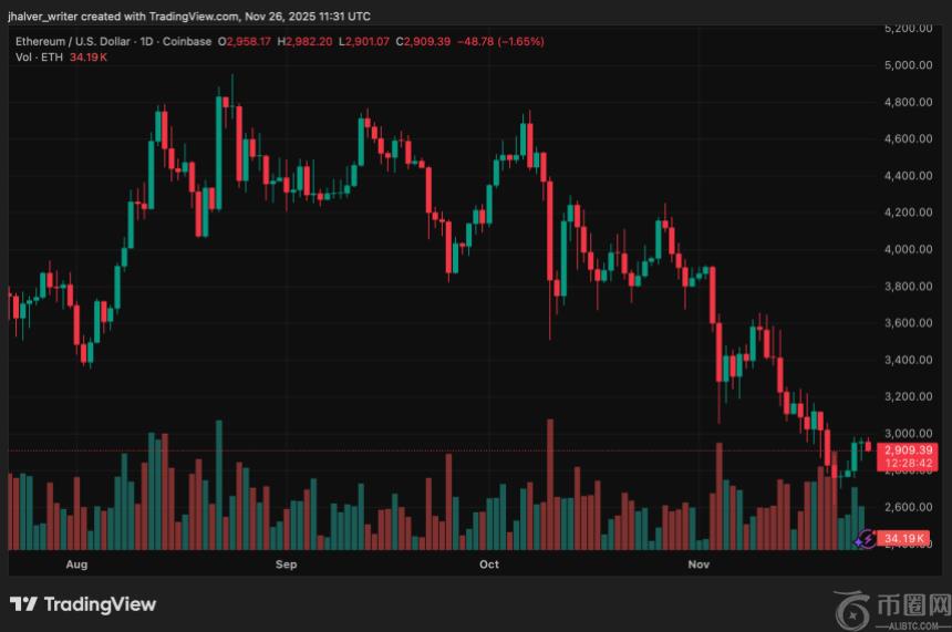 文章标题:以太坊价格稳定在 2900 美元附近,美联储降息预期提振其反弹至 3400 美元的希望。