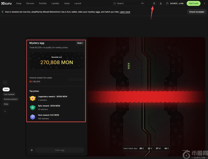 今晨,Kuru 推出 Monad 主网上线的奖励计划(参与链接:https://www.kuru.io/mystery-egg),每周将平台交易手续费的 25% 以 MON **的形式分给平台用户。根据平台显示,**周只需平台交易量超 5000 美元即可参与,奖池为 27 万枚 MON **,三名最幸运的用户将每人获得 3.6 万枚 MON **。