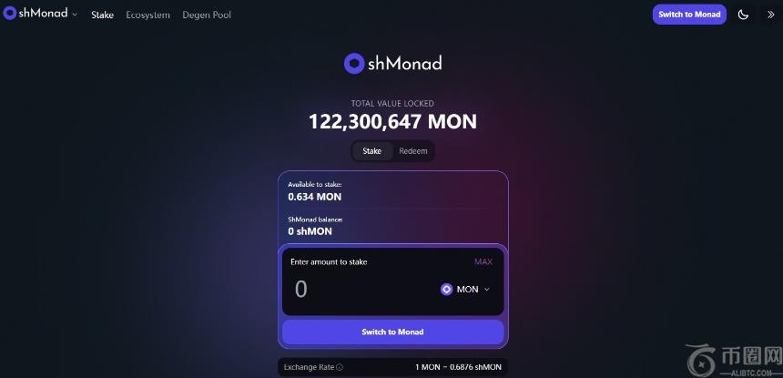 Monad 主网上线后,FastLane Labs 推出主网赚积分活动,将 MON 质押并铸造 shMON 并存入符合条件的链上项目后即可立即开始赚取积分(铸造 shMON 链接:https://shmonad.xyz/),目前已有超 1.22 亿枚 MON 参与质押。