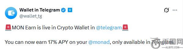 昨日,Monad 官方宣布与 Telegram 合作,用户可以在 Telegram 内置钱包存入和兑换 MON **,并且推出存 MON 赚币活动(参与链接:https://t.me/wallet/start?startapp=v2-b3BlcmF0aW9uPWVhcm5fY2FtcGFpZ24mY2FtcGFpZ25JZD0yOQ),具体内容如下:
