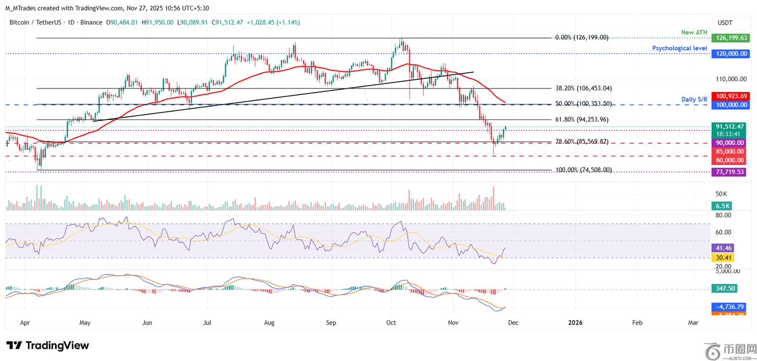 比特币价格上周比特币在 8 万美元的关键心理关口附近获得支撑,并在周末小幅反弹。比特币在月初继续反弹。本星期,周三收盘价超过 9 万美元。截至周四发稿时,比特币价格继续走高,高于 91,500 美元。