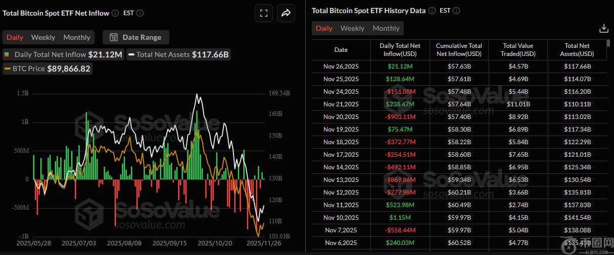 机构对比特币的需求显示抛售压力有所缓解。根据SoSoValue的数据,周三美国上市的现货比特币ETF录得2112万美元的温和资金流入,此前一天则录得1.2864亿美元的资金流入。然而,这些资金流入的强度并不像……上周记录到的流出线比特币要想继续复苏,资金流入趋势必须持续并加强。