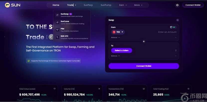 目前,SUN.io 通过资产交易 DEX 平台 SunSwap、稳定币交易产品 SunCurve 和 PSM、Meme 发行工具 SunPump、永续合约平台 SunPerp 四大核心引擎协同发力,共同驱动这**动性超级枢纽**运转。
