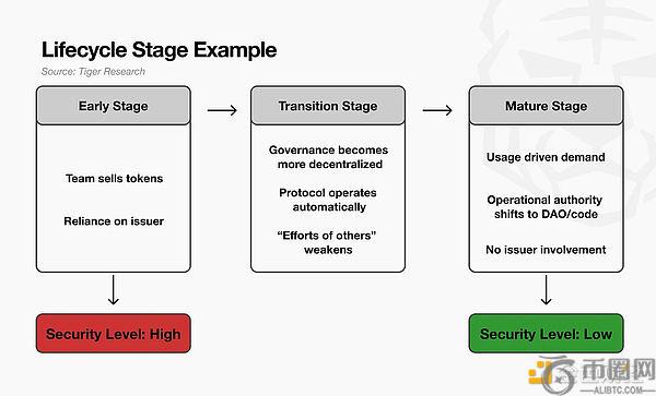 随着网络开始看到实际使用,治理变得更加去**化,并且协议在没有团队直接干预的情况下可靠运行,解释也随之改变。价格形成和系统运营不再依赖于团队的能力或持续工作。SEC 评估中的一个关键要素——“依赖他人的努力”——被削弱了。SEC 将这一时期描述为过渡阶段。