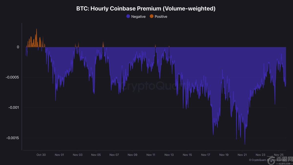 文章标题:比特币 Coinbase 溢价仍为负值:尽管压力有所缓解,美国机构投资者仍持续抛售