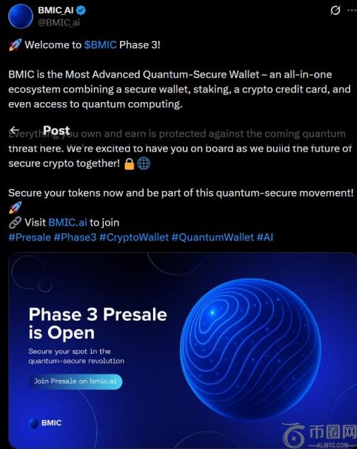 随着人们对现有区块链加密潜在漏洞的认识不断提高,该项目的社区也在持续壮大。BMIC 将自身定位为**于时代潮流的解决方案,致力于在不断变化的技术环境中提供长期安全保障。第三阶段更新还敦促参与者尽早保护其**,作为其所谓的“**安全行动”的一部分。