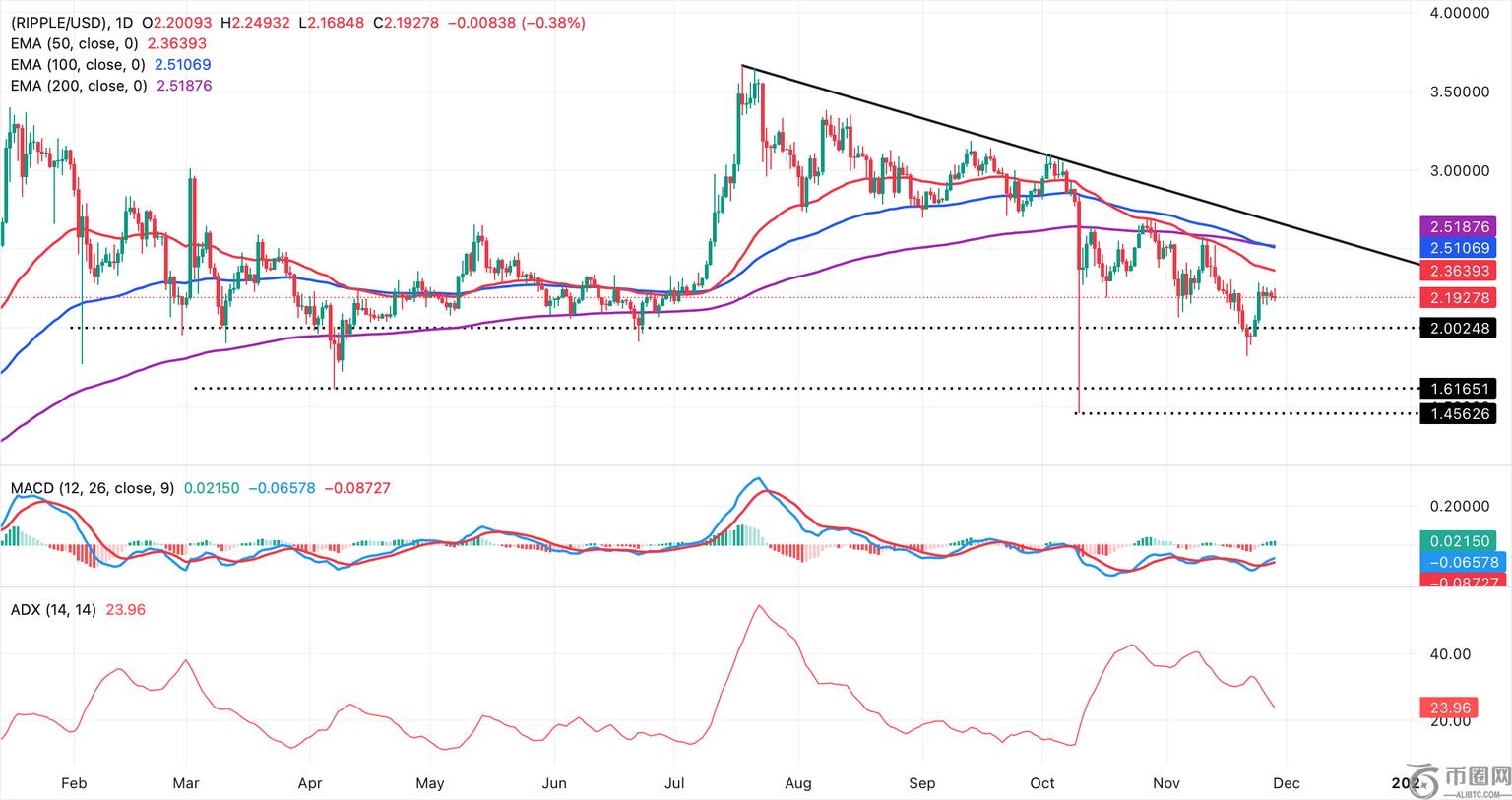 波纹截至周五发稿时,瑞波币 (XRP) 的交易价格在窄幅区间内波动,支撑位在 2.15 美元,阻力位在 2.30 美元。这种跨境汇款**已连续四天维持在这一窄幅区间内,表明多空双方正在争夺市场控制权。