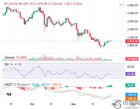 以太坊价格报 3,023 美元,过去 24 小时上涨 0.65%,本周累计上涨约 10%。价格从 2,626 美元的 200 周移动均线反弹,显示出强劲的长期支撑。
