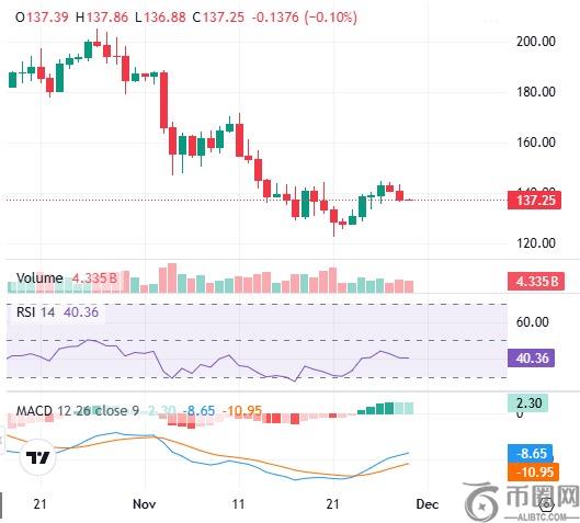 该币种目前交易价格为 137 美元,在过去 24 小时内下跌了 1.90%。